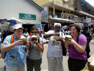 What fun Beth, Nicole, Lisa and I had as Mercia took us to the Makaloa Market in Accra. I have written about this market in the past. Lots of people, crowded stalls and you can buy anything. We did some fabric shopping, jewelry shopping and bead shopping. Enjoy the Photos.