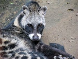 We then continued on our way through their little park seeing several other monkeys and making our way up the steps to the next level. All of the steps and pillars are made from rock they broke themselves with hammers. Amazing! We then saw a Civet. It looked like a Badger Raccoon mix. Very mean, apparently, as he ate his own brother and sister. We also saw Genet Cat, a spotted, Egyptian looking cat. After the cats we headed up the steps to see a cousin to the elephant. They were small animals that looked like a skunk without a tail and had elephant like feet. Quite cute!