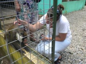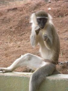 The first monkeys we saw looked like they were from Star Trek. Their names were Captain Kirk and Mr. Spock. We then came upon a White Spot Nosed monkey who became my best friend. I reached through the bars of his cage and began to scratch his head and neck. He then turned and lifted his arm for me to scratch his belly. So cute! Loved him!