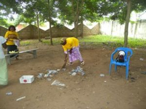The district Assembly Man met us and told us he would call the people and they would come. And he was right. They came and they came and they came. By mid morning we had over 140 people, mostly women, mostly Muslim. Up to now we had been teaching in the Ga language with some English. Now we had two new language, Twi and Akan. Since we did not have interpreters, we ask the women to group themselves according to language and help one another with translation. From the amount of questions that were continually asked, I am certain that most women hear answers in their own language.