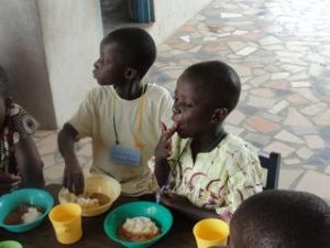 Love also comes in many other forms. For children here in Ghana over the last week it has come with big hugs, encouraging words–even words they cannot yet understand, beautiful smiles and food to warm their tummies. For me, it has come with lots of laughs, wonderful images of young people from the US getting down in the dirt, digging in their pockets, sharing their water bottles, getting angry at the injustice of inequality and pure joy being shared with everyone.