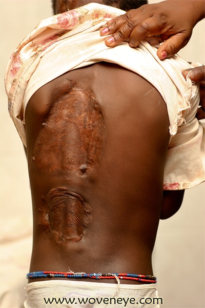 Disfigurement in a young girl caused by Buruli Ulcers.
