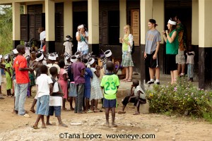Today was the second day of classes! After a long, bumpy bus ride, we arrived at the village and all of the kids were already standing in front of the school. When we piled out of the bus, they came and attacked us all with huge hugs. While setting up for class, the children learned how to play “duck, duck, goose” outside. Some got the hang of it, while others kept saying “duck, duck, DUCK!” It was a joy watching them run around and enjoying their time. When the game was over, the children lined up to sing the Ghana national anthem, Lord’s Prayer, “Read your Bible, Pray every day”, and “Shoo fly don’t bother me”. They are better singers than any American Idol I’ve heard.