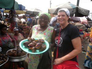 I actually enjoyed this market quite a bit. Most of the vendors were women, and with large amounts of food in baskets, they were not as pushy as the previous markets we had seen. I did manage to find the giant snails. We bought some so that I could get a photo of them, and asked the woman if I could keep an empty shell and take it home to the US. She thought I must be some crazy woman, but my husband, the scientist, will love me for getting this back to the states (sorry to ruin the surprise, honey.) Ah, the things you do for love…