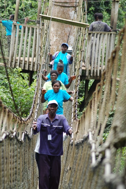 Only 6 of the Ghanaians made it past the first bridge. They laughed and teased each other about Grandma Debi telling them to look up and see the butterflies and beautiful scenery when all they could do was hold on for dear life and watch their feet. As for the teens, they had a blast and have written about their adventures–it is somewhere in cyber space at the moment but I hope to retrieve it tomorrow.