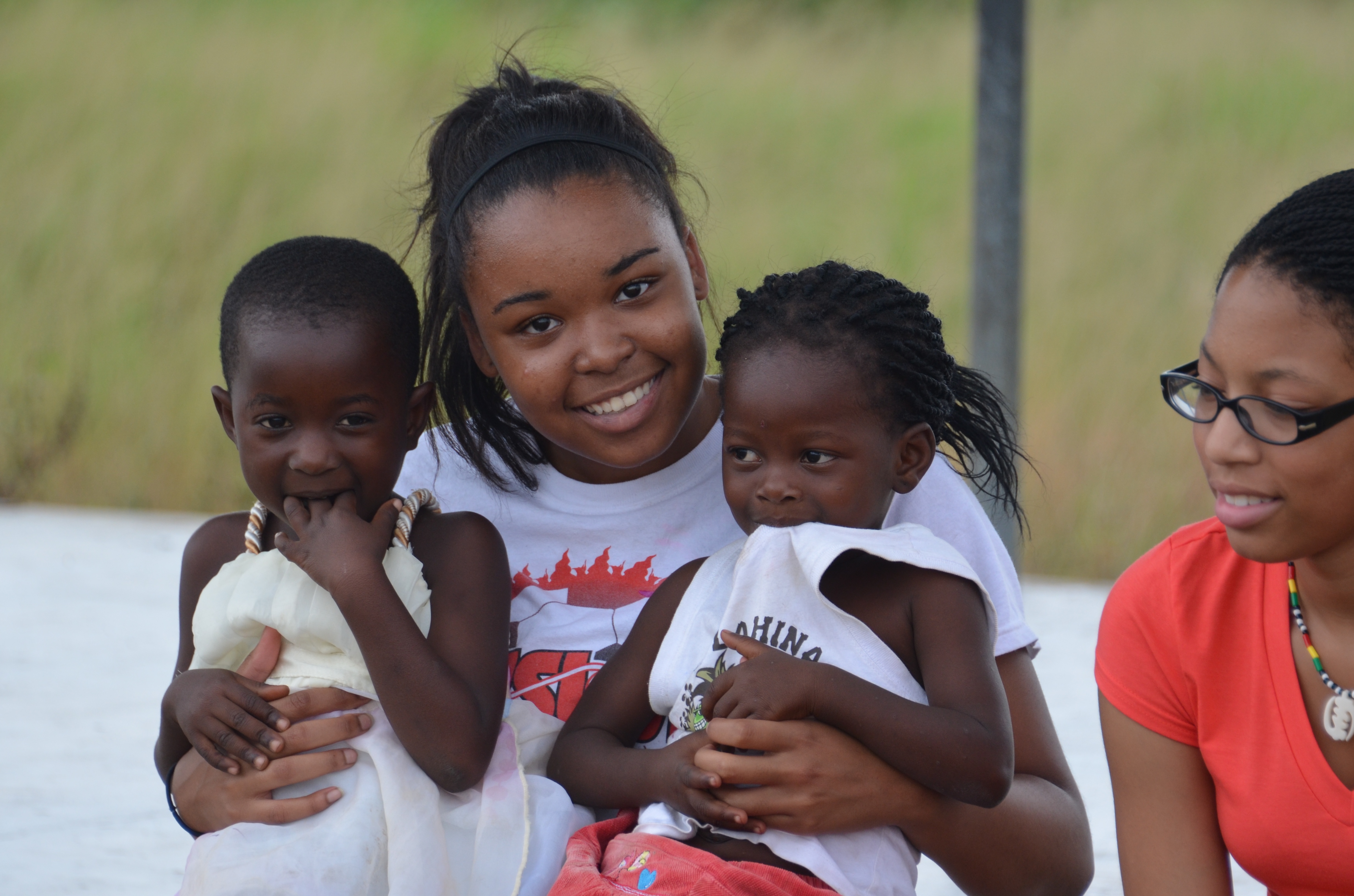 were playing after lunch. There are a little over 60 kids registered in the reading camp, but anywhere from 10 to 40 children from the local village come hang out on the school grounds during the course of the day wishing they could be included in the camp. One of our teen volunteers, Adrianna was here last year and it was such an impactful experience that she returned for Reading Camp this year. All week Raegan, Maggie and Adrianna (our teen team) have been fabulous about spending their “down time” out playing with the camp kids and the village kids. One day Adrianna was sitting on the play yard wall, snuggling with one of her favorite kids, Christiana. With Christiana on her hip, she came over and asked Debi “what does it take to sponsor a child here and what do they get?”. It was such an innocent question with such pure intentions that I was immediately moved by her huge heart and glued to the conversation so I could hear the answers.
