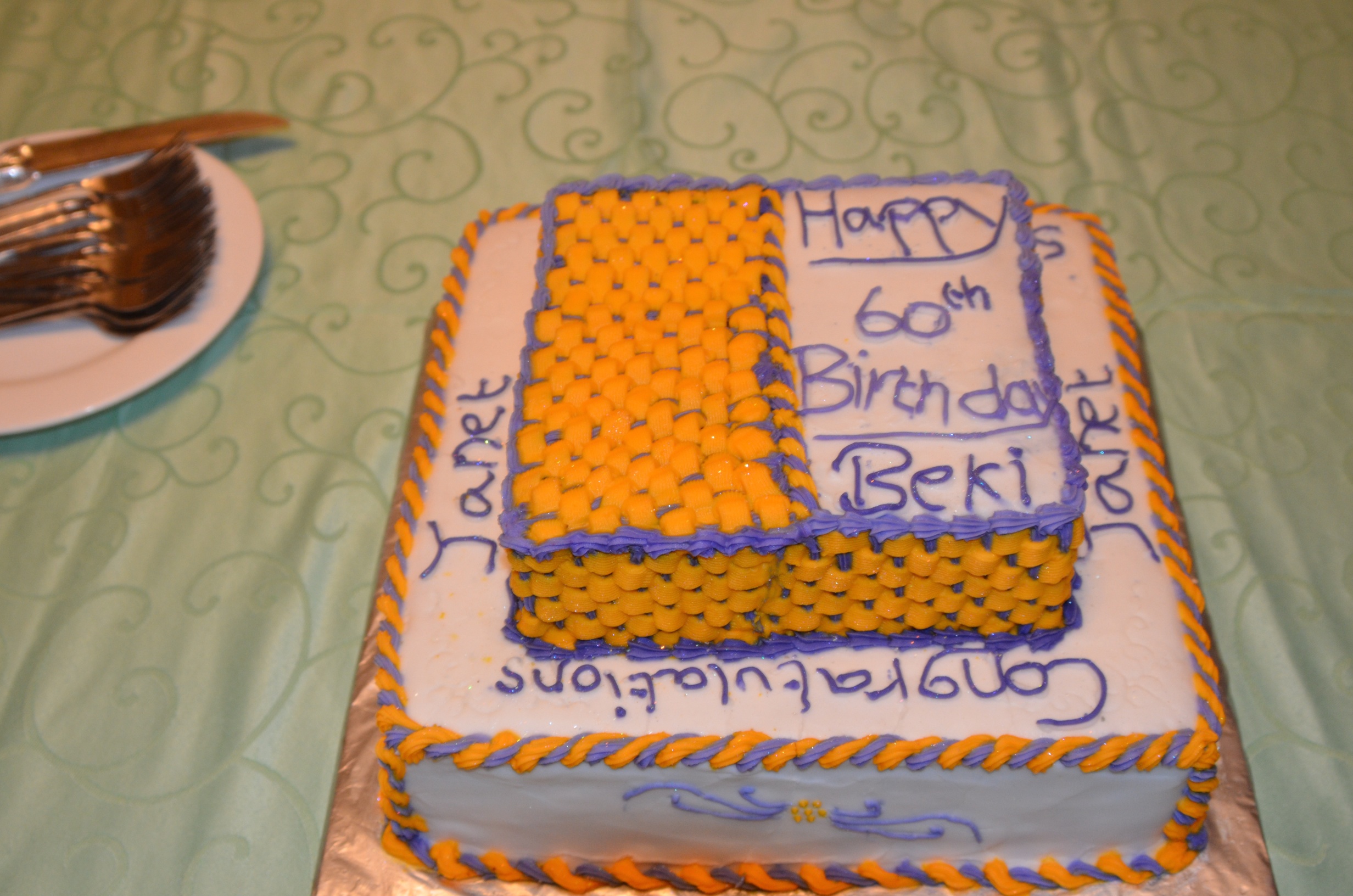 but the one that we attended was definitely one of a kind. Sunday was a special day; we celebrated Becki’s 60th birthday! Every year we try to take time out of our busy Sunday schedule and celebrate with Becki and the blessing that she brings to our life and to GMH. If there is a birthday, there should be cake, good food and good company and that is exactly what we had. At around 5:30pm, the entire team and some of Mercia’s friends, some fellow GMH board members loaded the bus and headed to Regal Chinese Restaurant. I went there last year and was excited about how delicious and authentic the food was, and for the prospect of more vegetables. We arrived there about an hour later and then for the first time I noticed the 2 tiered, square cake. I was surprised to see my name on the cake. It read “Congratulations Janet.” The cake was huge and we all hoped that it would make it to the restaurant, up the steep steps in one piece.