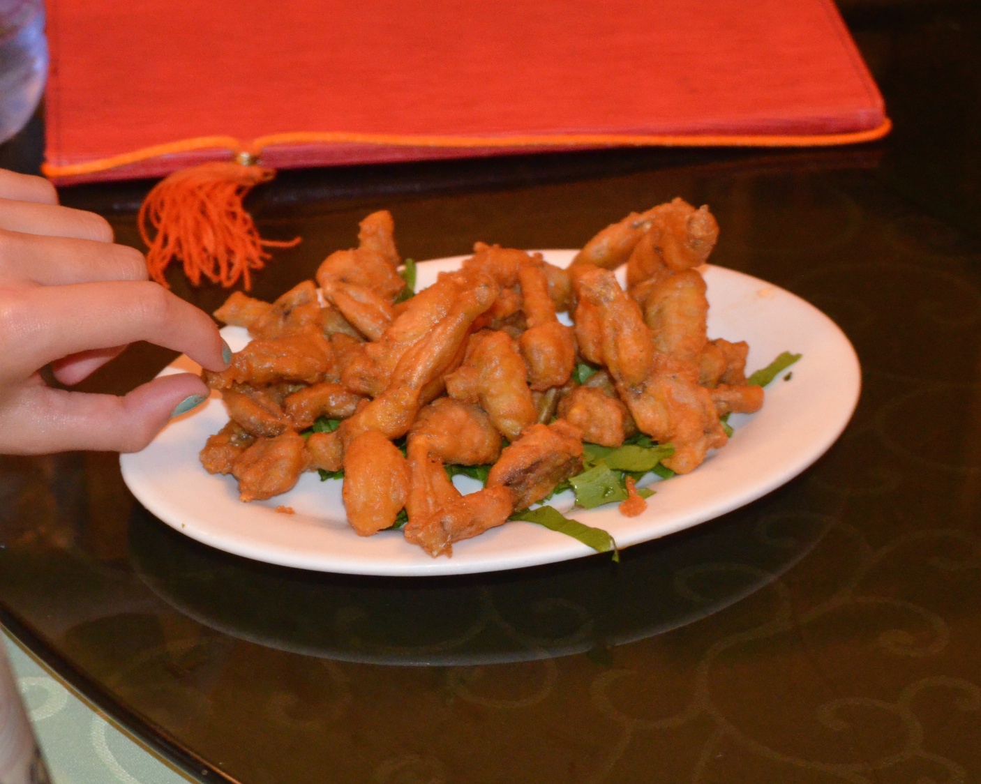 Everyone arrived to the first floor of the restaurant. It was nicely decorated, some oriental pieces hung from the yellow walls. The team were seated at two round tables, with a built in lazy Susan in the center of the table. Soon after we sat down, people began to trickle in. Every time the door opened, someone entered with a cheer. We met many uncles and aunties that night, all such lovely people whom were so warm and thoroughly honored to have been invited to spend time with us to celebrate such a joyous occasion. The person that received the loudest ovation was Bishop Daniel Torto of the Anglican Diocese of Accra. I loved hearing him bless the food and our time together. The food arrived and it smelled delicious! The aromas smelled familiar: spicy and aromatic. We began our dinner, family style. There were many options from which to choose and to share with our old and new friends. We even had frog legs and octopus.