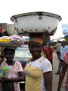 Four million people live in Accra and most of them are in Makola market. Then there is me! Today it was 90 degrees. I’m a Florida girl so this temperature is not a big issue unless you are packed in the market like sardines. Not only is there what feels like millions of people but many are carrying large cartons and boards on their heads. Now I am about 5’9” which is 4 or 5 inches taller than most carriers in the market. This puts their boards at just about eye level to me. I’ve been wacked in the head more than once.