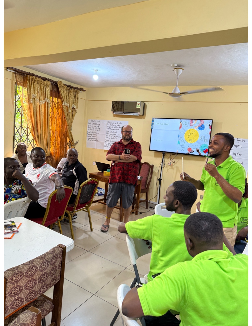The teachers, in sharing, gave some wonderful examples and ideas of what innovation can look like in a Ghanaian classroom: using student art work or student work to adorn the bare classroom walls when teacher have no posters—allowing students to act out a mini presentation, sharing what they have learned, instead of simply repeating what the teacher said. Creating peer review and reflection to check for understanding. I shared several ideas to use in class to get students thinking and wondering (See, Think, Wonder), and we did this activity. Several teachers discussed with me how to use it in their classrooms with their content/grade level.